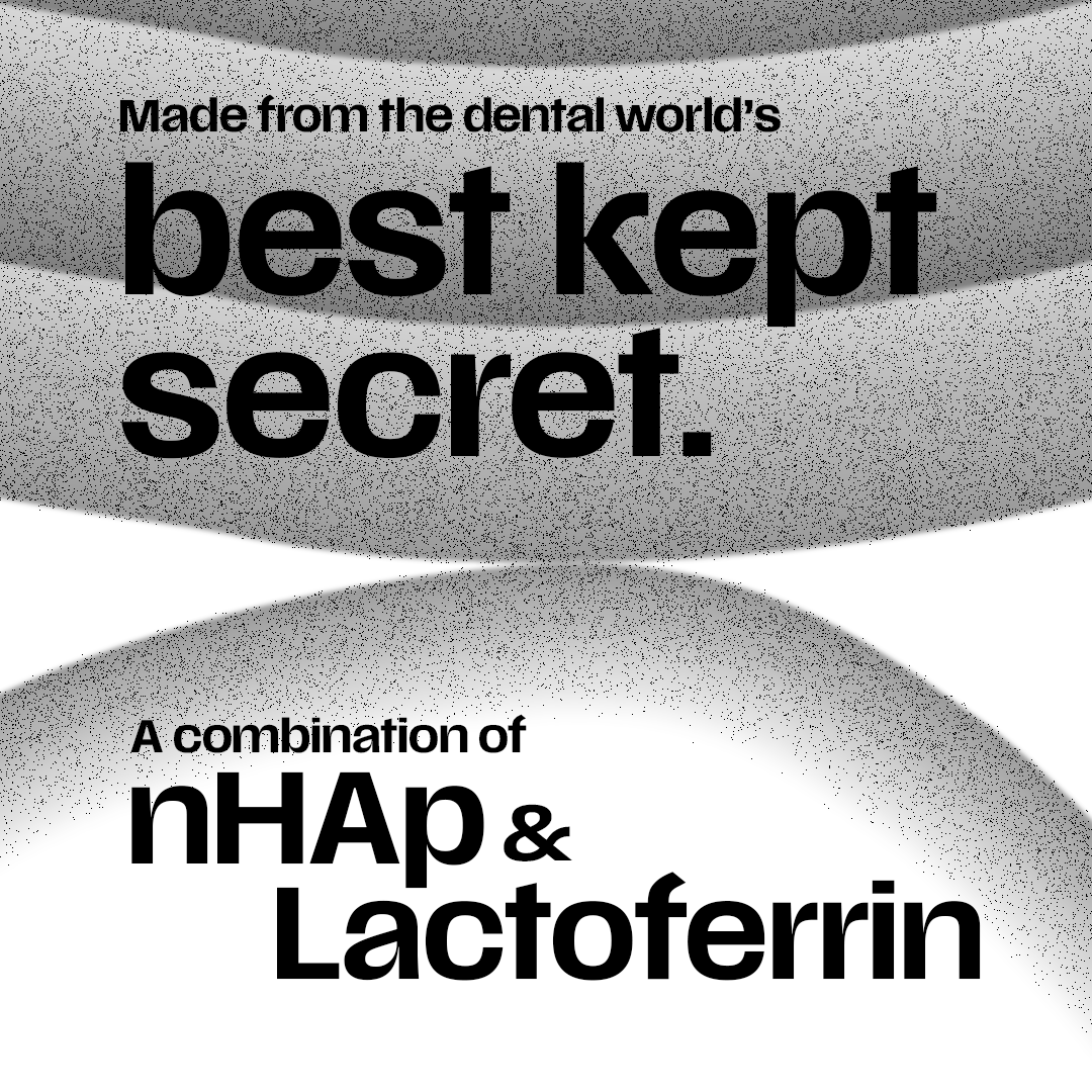 Sorbitol, Aqua, Silica, Nano hydroxyapatite (nano hydroxyapatite dispersion), Charcoal, PVP, Cocamidopropyl betaine, Sodium Methyl Cocoyl Taurate, Potassium Citrate, Sodium Tripolyphosphate, Sodium Hexametaphosphate, Zinc citrate, Fragrance, Cellulose gum, Tetrapotassium Pyrophosphate, Sodium saccharin, Sodium benzoate, Lactoferrin. |
