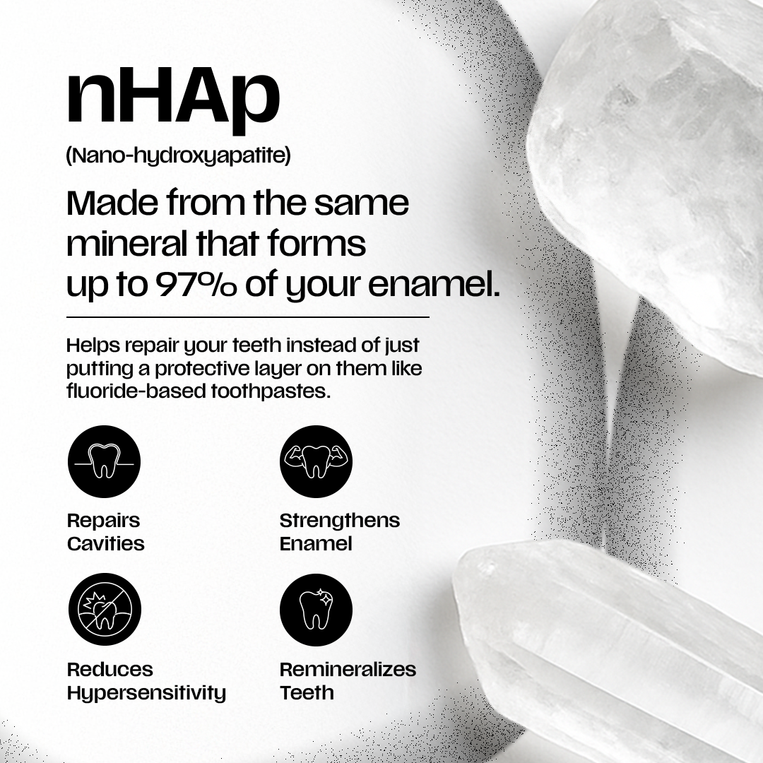 Enriched with Nano-Hydroxyapatite(nHAp), it helps repair enamel, cavities, and provide all-around cavity protection for complete oral care.