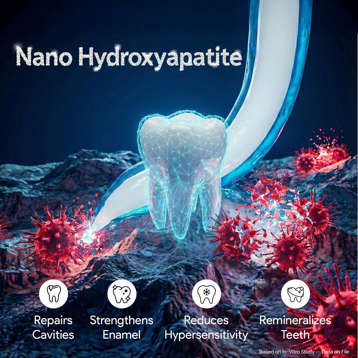 Dente91 Ultra shield brings together Nano Hydroxyapatite (nHAp) and Lactoferrin in a ground breaking formula that mimics your teeth’s natural biology—setting a new standard in advanced oral care.