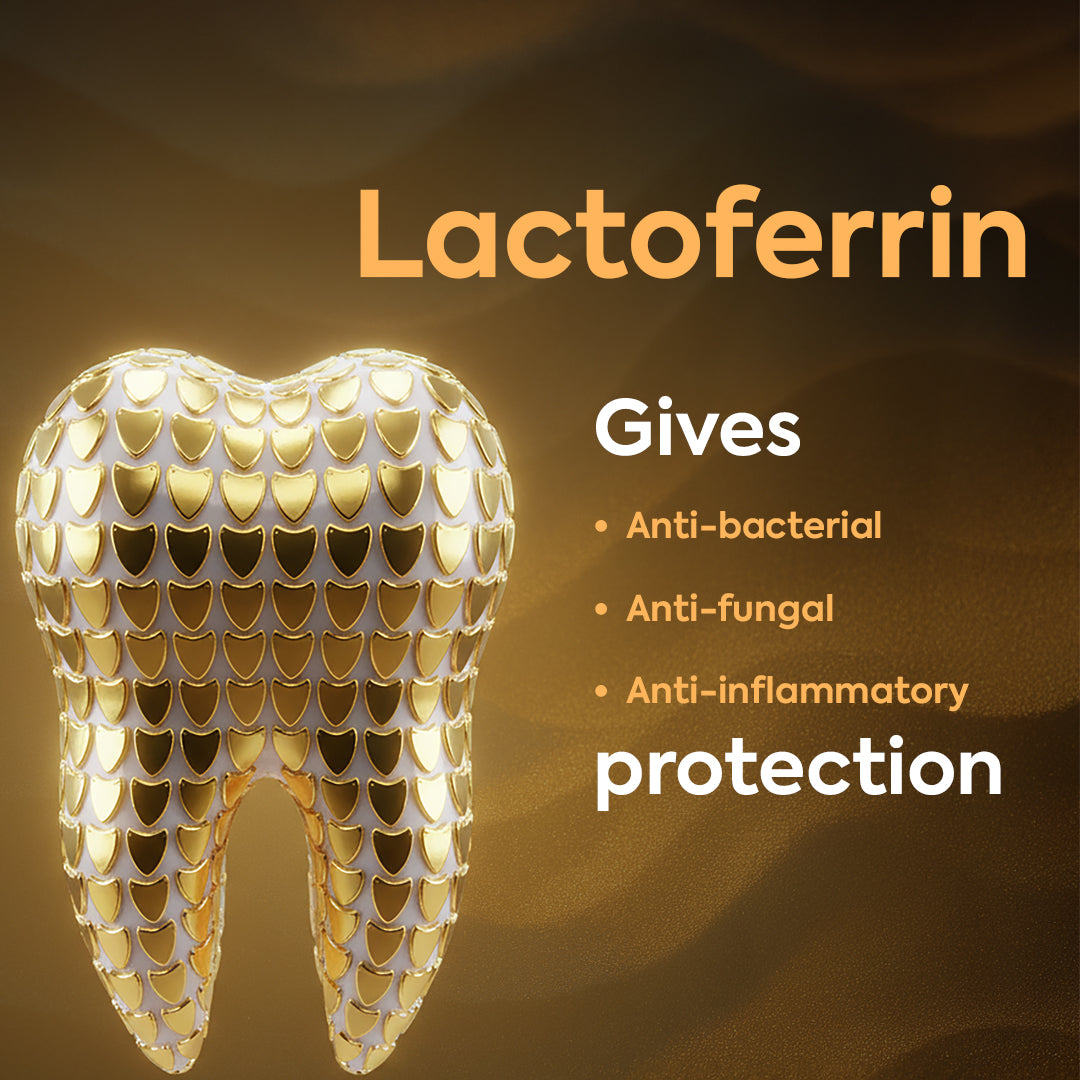 Lactoferrin, a natural protein found in saliva, fights harmful bacteria for a healthier oral cavity.