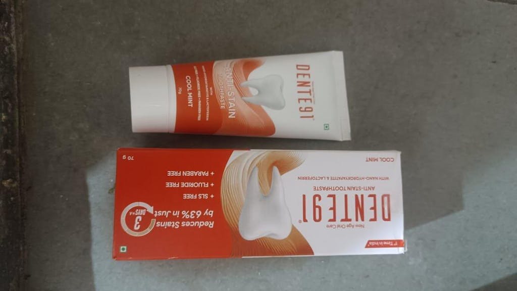 Dente91 Anti-Stain Expert is a teeth whitening toothpaste designed to remove stains & deliver visible results. It helps reduce stains by 63% & 80% Improvement in Teeth Whitening in just 3 days of Use^* with regular brushing.