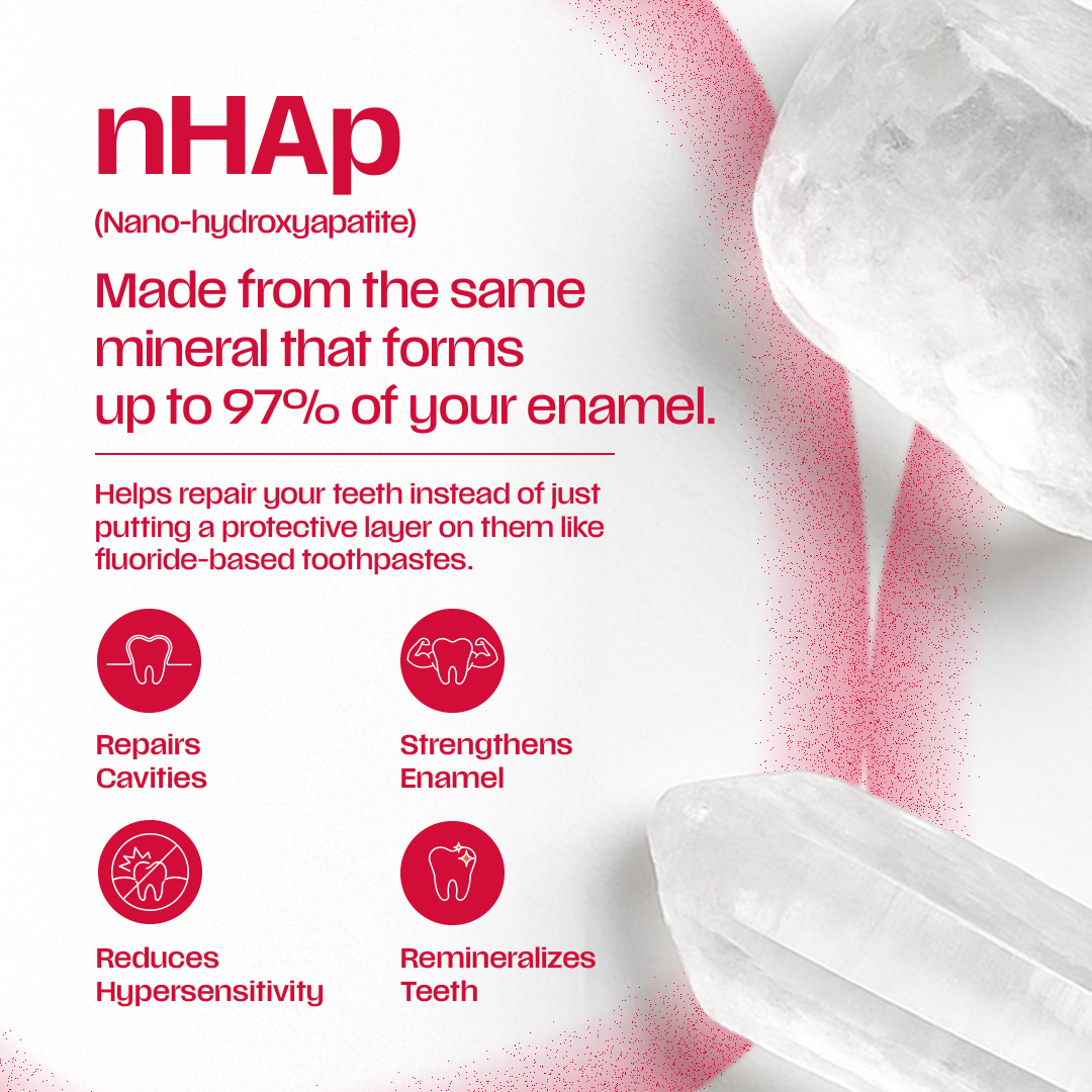This Nano Hydroxyapatite toothpaste supports natural enamel remineralisation, helping strengthen teeth, reduce sensitivity, and support cavity repair without fluoride.