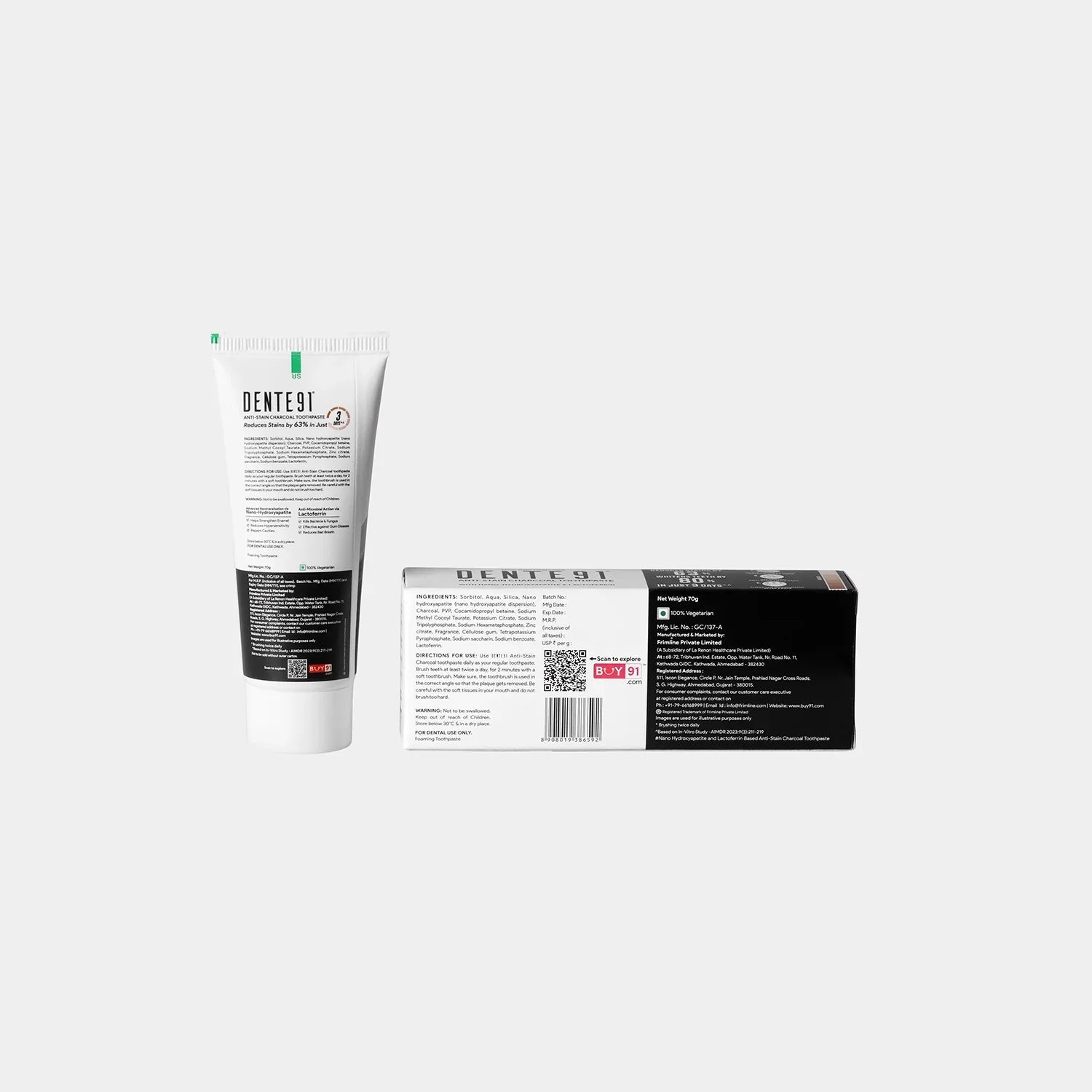 - Revolutionize your oral care routine with the high abrasive potential of charcoal toothpaste for a brighter, healthier smile. Infused with the purifying properties of charcoal, Dente91 toothpaste effectively removes stains and promotes oral health.